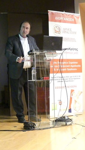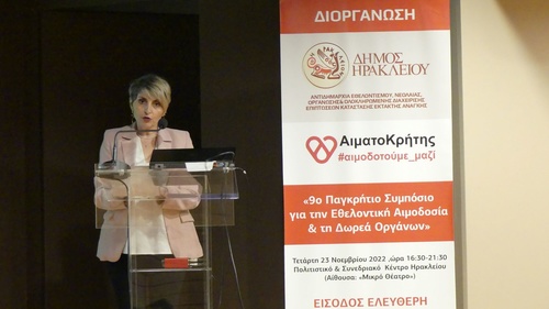Με μεγάλη επιτυχία και συμμετοχή επαγγελματιών υγείας, εθελοντών και φορέων, πραγματοποιήθηκε την Τετάρτη 23 Νοεμβρίου 2022, στο Πολιτιστικό και Συνεδριακό Κέντρο Ηρακλείου, το «9ο Παγκρήτιο Συμπόσιο για την Εθελοντική Αιμοδοσία και την Δωρεά Οργάνων». Το συμπόσιο διοργανώθηκε από την Αντιδημαρχία Εθελοντισμού, Νεολαίας, Οργάνωσης & Ολοκληρωμένης Διαχείρισης Επιπτώσεων Κατάστασης ‘Έκτακτης Ανάγκης του Δήμου Ηρακλείου και τον Παγκρήτιο Σύνδεσμο Εθελοντών Αιμοδοτών και Δωρητών Οργάνων Σώματος «Αιματοκρήτης».