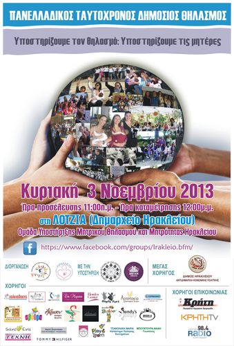 Στηρίζουμε την “Ομάδα Ηράκλειο: Ομάδα Υποστήριξης Μητρικού Θηλασμού και Μητρότητας” στο έργο της και συμμετέχουμε στην υλοποίηση των δράσεων ενημέρωσης και ευαισθητοποίησης της τοπικής κοινωνίας. Στο πλαίσιο του εορτασμού της εβδομάδας μητρικού θηλασμού συμμετέχουμε όλοι στην εκδήλωση γιορτή για το μητρικό θηλασμό που θα πραγματοποιηθεί την Κυριακή 3 Νοεμβρίου στο Αίθριο της Λότζια με στόχο το Ηράκλειο να αποτελέσει μια πόλη υποστηρικτική και φιλική στο θηλασμό. Κατά την εκδήλωση θα πραγματοποιηθεί Πανελλαδικός Δημόσιος Ταυτόχρονος Θηλασμός από τις 11.00 π.μ. στον οποίο συμμετέχουν 39 πόλεις της Ελλάδας ενώ στις 12.00 μ. θα γίνει η καταμέτρηση σε όλες τις συμμετέχουσες πόλεις.