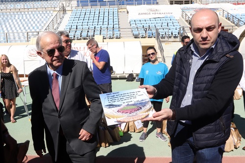 Ο Δήμαρχος, συνοδευόμενος από τον Αντιδήμαρχο Αθλητισμού Κώστα Βαρδαβά και τον Αντιπρόεδρο της Ανάπτυξης Αθλητισμού ΑΕ ΟΤΑ Μαρίνο Παττακό, καλωσόρισε τους φιλοξενούμενους στο Ηράκλειο και τους προσέφερε μια αναμνηστική τσάντα με τοπικά προϊόντα και πληροφορίες για την πόλη και την Κρήτη.