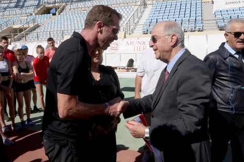 Τις ομάδες στίβου από την Γερμανία και την Ελβετία που προπονούνται στο Παγκρήτιο Στάδιο επισκέφθηκε το πρωί της Μεγάλης Πέμπτης 5 Απριλίου ο Δήμαρχος Ηρακλείου Βασίλης Λαμπρινός.