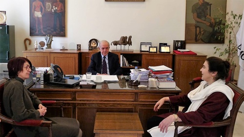 Την Υπουργό Πολιτισμού Λυδία Κονιόρδου υποδέχτηκε στο γραφείο του στην Λότζια το μεσημέρι της Παρασκευής 26 Ιανουαρίου ο Δήμαρχος Ηρακλείου Βασίλης Λαμπρινός. Στη συνάντηση παρευρέθη και η Προϊσταμένη της Εφορίας Αρχαιοτήτων Ηρακλείου Βασιλική Συθιακάκη και συζητήθηκαν θέματα που αφορούν στα μνημεία παγκόσμιας εμβέλειας του Ηρακλείου, όπως την Κνωσσό και τα Ενετικά Τείχη και στους τρόπους ανάδειξής τους.