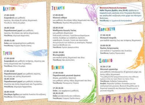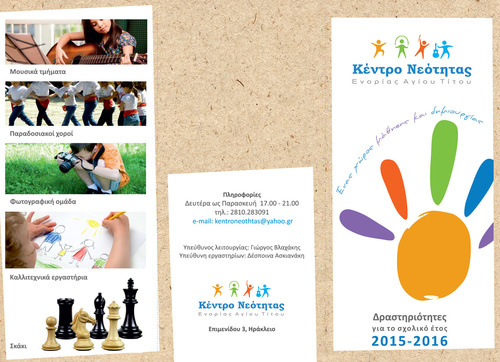Το κέντρο νεότητας ενορίας Αγ.Τίτου παρουσιάζει τις δραστηριότητες για το σχολικό έτος 2015-2016.