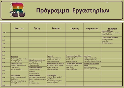 19:00-21:00 | ΠΟΛΙΤΙΚΟ ΘΕΑΤΡΟ, Καθηγητής: Λευκοθέα Γεργεριτάκη, Κόστος:30ευρώ/μήνα