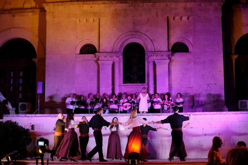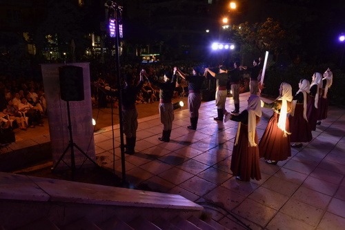 Πάνω από 100 συντελεστές και πολύ περισσότεροι από 1000 θεατές είχαν τη μοναδική ευκαιρία, την δεύτερη μέρα του Φεστιβάλ, να απολαύσουν μια εντυπωσιακή μουσικοχορευτική παράσταση με τίτλο «Οι χοροί των Αετών». Μια περιπλάνηση στις μουσικές του κόσμου με ήχους, χρώματα και χορούς από Magna Grecia (Κάτω Ιταλία), Τουρκία, Ινδία-Πακιστάν, Μικρά Ασία και τα νησιά του Ανατολικού Αιγαίου, Ανατολία – Χοροί Δερβίσηδων, Πόντο, Θράκη και φυσικά Κρήτη, σε μια βραδιά γεμάτη οπτικές και ακουστικές εναλλαγές με φόντο τον επιβλητικό ναό του Αγίου Μηνά.