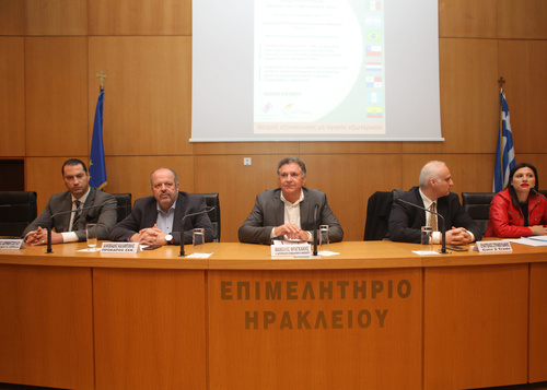 Ο Α΄ Αντιπρόεδρος του Επιμελητηρίου Ηρακλείου κ. Μανώλης Φραγκάκης, επισήμανε στο χαιρετισμό του, «με επίγνωση της σημασίας που έχει η εξωστρέφεια για την ανάκαμψη της οικονομίας, το Επιμελητήριο Ηρακλείου διαμορφώνει το δικό του πλάνο για την στήριξη των τοπικών επιχειρήσεων, για την αύξηση των εξαγωγών μας, για τη δημιουργία περισσότερου πλούτου και περισσότερων θέσεων εργασίας. Υποστηρίζουμε όλους τους κλάδους προϊόντων και υπηρεσιών. Από τα τρόφιμα και την κατασκευή μέχρι τη λαϊκή τέχνη και τον τουρισμό.»
