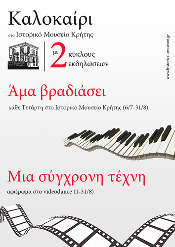 Τον Ιούλιο και τον Αύγουστο το Ιστορικό Μουσείο Κρήτης επεκτείνει το ωράριο του και θα είναι ανοικτό για τους φίλους κι επισκέπτες του κάθε Τετάρτη βράδυ από τις 20.00΄ ως τις 23.00΄.