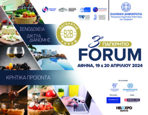 Με γοργούς ρυθμούς ολοκληρώνεται η προετοιμασία για το 3ο Παγκρήτιο Forum Προώθησης Κρητικών Προϊόντων στην Αθήνα, το οποίο θα διεξαχθεί στον χώρο της HELEXPO στο Μαρούσι, 19 και 20 Απριλίου.
