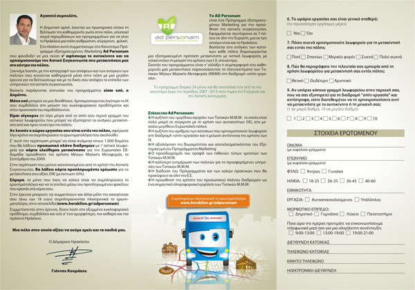 Δημιουργούμε ιστοσελίδα του προγράμματος (www.heraklion.gr/adpersonam) όπου μπορούν να ενημερώνονται οι πολίτες για το πρόγραμμα αλλά και να συμμετέχουν στην έρευνα