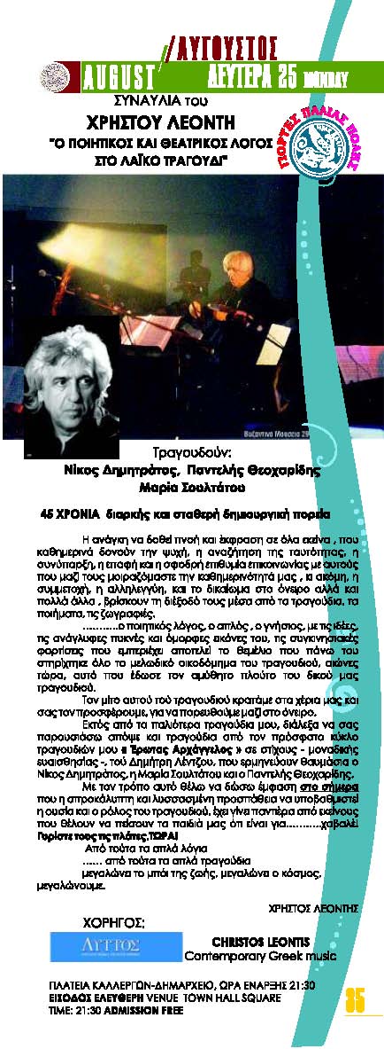 Έκθεση ζωγραφικής της Ηλέκτρας Τερζή Θα φιλοξενηθεί από τις 24/7/2008 έως τις 4/8/2008 στην Πύλη Bιττούρι (Βίγλα). Τα εγκαίνια της έκθεσης θα πραγματοποιηθούν την Πέμπτη 24/7/2008 και ώρα 20:00 μμ.
