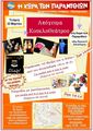 (Στο χώρο της Αίθουσα Πολλαπλών Χρήσεων θα λειτουργεί έκθεση παιδικού βιβλίου και δημιουργική απασχόληση για τα παιδιά).