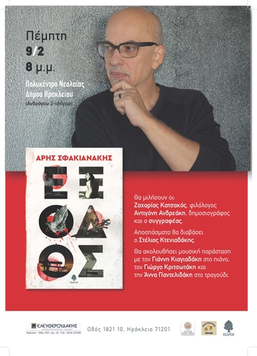 Παρουσίαση του Βιβλίου του Άρη Σφακιανάκη «ΕΞΟΔΟΣ» στο Πολύκεντρο Νεολαίας (Ανδρόγεω 2, Ισογειο) την Πέμπτη 9 Φεβρουαρίου 2017 στις 20:00