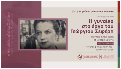 «Η γυναίκα στο έργο του Γεωργίου Σεφέρη» από το Σχήμα 7 έρχεται στο διαδικτυακό κανάλι πολιτισμού του Δήμου Ηρακλείου, Heraklion Arts and Culture, την Τετάρτη 1 Δεκεμβρίου 2021 στις 21:15.
