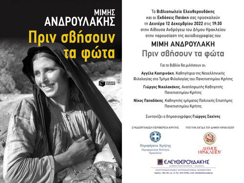 Το Βιβλιοπωλείο Ελευθερουδάκης και οι Εκδόσεις Πατάκη σας προσκαλούν τη Δευτέρα 12 Δεκεμβρίου 2022 στις 19:30