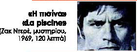 Προβολή της ταινίας "Η ΠΙΣΙΝΑ" "LA PISCINE",(Ζαν Ντερέ,μυστιρίου,1969, 120 λεπτά) Παρασκευή 8 και Σάββατο 9 Αυγούστου στις 21:30.