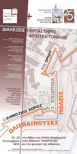 Ο Σύλλογος Αρχιτεκτόνων Νομού Ηρακλείου συνδιοργανώνει με το Τμήμα Αρχιτεκτόνων Μηχανικών του Πολυτεχνείου Κρήτης, Εργαστήριο Αρχιτεκτονικού Σχεδιασμού (Workshop) με τίτλο: