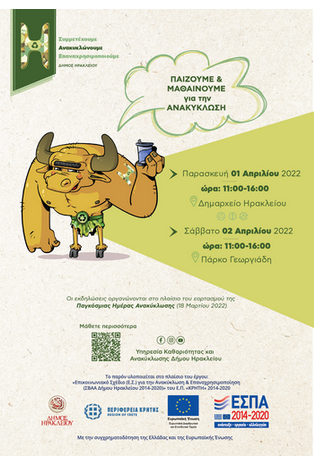 Ο Δήμος Ηρακλείου με στόχο να φέρει τους δημότες πιο κοντά στην ανακύκλωση, εκπαιδεύει μέσα από το παιχνίδι, σε ένα διήμερο street event, όσους θέλουν να μάθουν, να παίξουν και να διασκεδάσουν με πρωτότυπες ανακυκλώσιμες ιδέες και παιχνίδια.