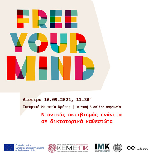 Η εκδήλωση διοργανώνεται στο πλαίσιο του έργου “Free your Mind: Youth Activism in Southern Europe in Times of Dictatorship – FYM”,