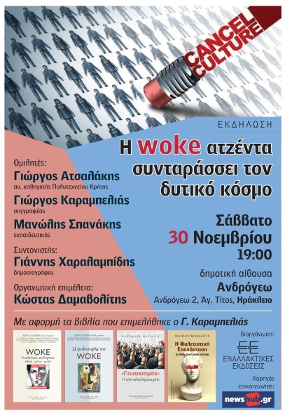 Mε αφορμή τα βιβλία που επιμελήθηκε ο Γ. Καραμπελιάς: Woke, η καθολική αποδόμηση, Γουοκισμός ο νέος ολοκληρωτισμός, Η φιλοσοφία του woke και Φυλετιστική Επανάσταση που κυκλοφορούν από τις Εναλλακτικές Εκδόσεις.