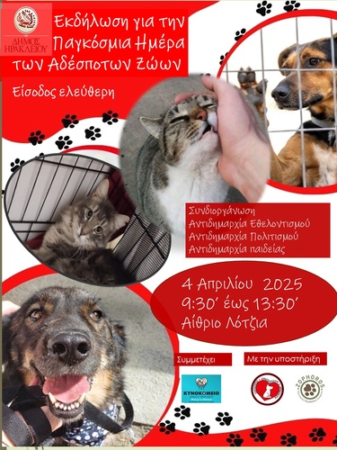 Με αφορμή την Παγκόσμια Ημέρα Αδέσποτων Ζώων ,Παρασκευή 4 Απρίλιου