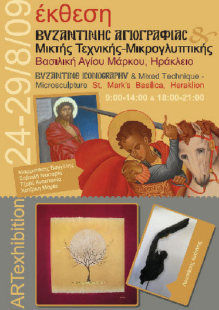 Την εβδομάδα από 24 έως και 29/8/2009 στον χώρο της Βασιλικής του Αγίου Μάρκου θα εκθέσουν για πρώτη φορά τα έργα τους πέντε Χανιώτες δημιουργοί, τέσσερις αγιογράφοι κι ένας εικαστικός.