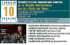 Συναυλία έντεχνης παραδοσιακής μουσικής με το Μιχάλη Φραγκιαδάκη και την «ΠΥΛΗ ΤΟΥ ΉΧΟΥ»