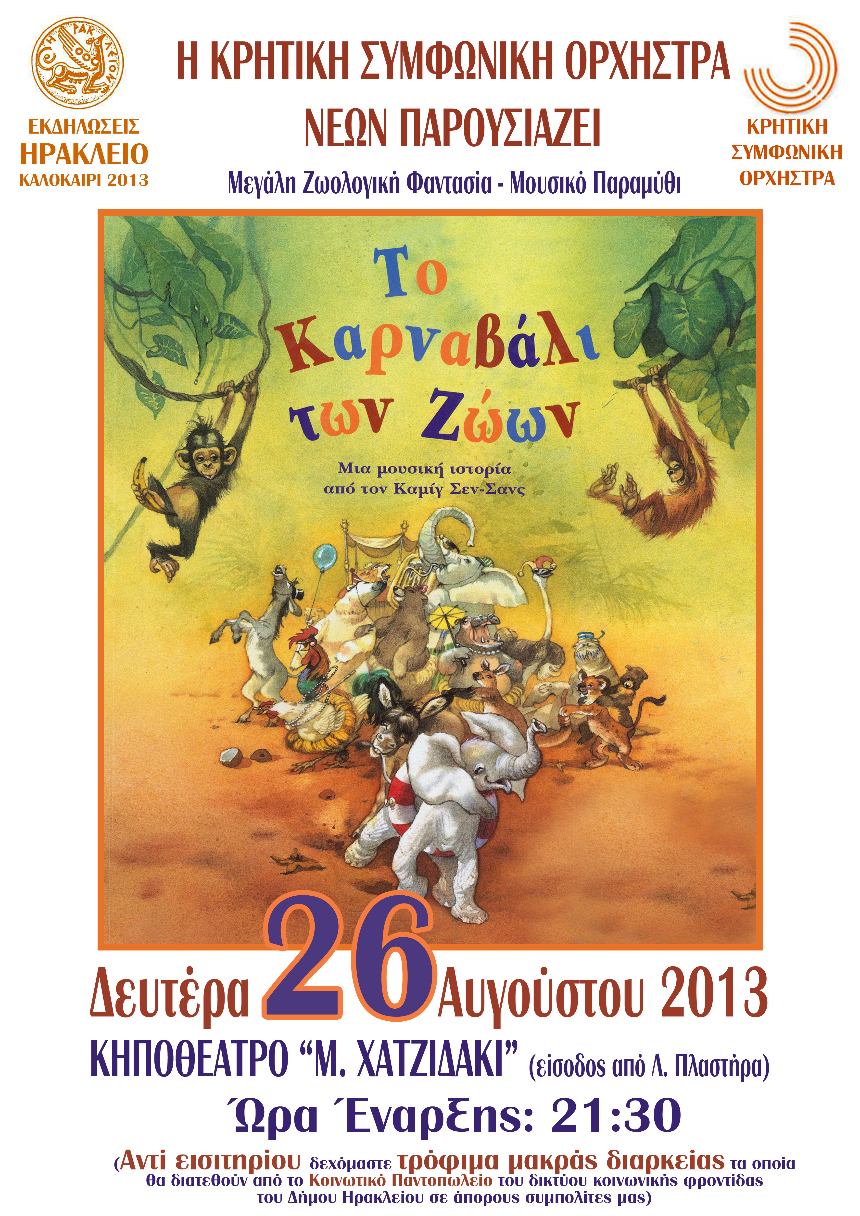 Κρητική Συμφωνική Ορχήστρα Νέων θα παρουσιάσει «ΤΟ ΚΑΡΝΑΒΑΛΙ ΤΩΝ ΖΩΩΝ»
