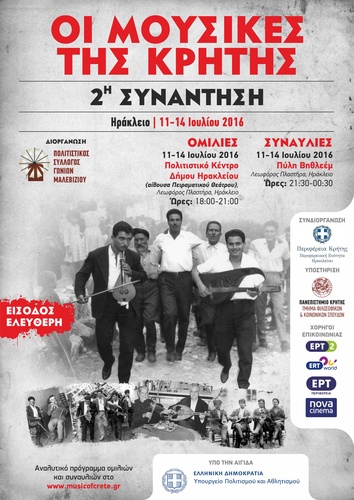 Με την συνδιοργάνωση της Περιφέρειας Κρήτης-ΠΕ Ηρακλείου το τετραήμερο πολιτισμού «ΟΙ ΜΟΥΣΙΚΕΣ ΤΗΣ ΚΡΗΤΗΣ – 2η ΣΥΝΑΝΤΗΣΗ» που οργανώνει ο πολιτιστικός σύλλογος Γωνιών Μαλεβιζίου