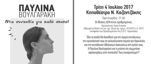Σας προσκαλούμε στη συναυλία που διοργανώνει ο Ροταριανός Όμιλος Ηρακλείου, με την μοναδική Παυλίνα
