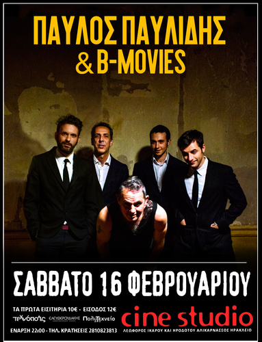 Ο Παύλος Παυλίδης & οι B-movies επιστρέφουν στο Cine Studio, το Σάββατο 16 Φεβρουαρίου, για μία και μοναδική εμφάνιση.