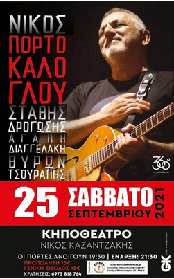 Η GK Event Productions παρουσιάζει το Νίκο Πορτοκάλογλου, έναν από τους κορυφαίους μουσικούς και τραγουδοποιούς της χώρας μας, στο Ηράκλειο το Σάββατο 25 Σεπτεμβρίου 2021.