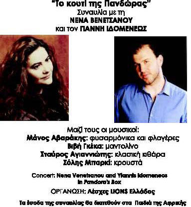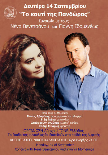 Το κουτί της Πανδώρας Συναυλία με τους: ΝΕΝΑ ΒΕΝΕΤΣΑΝΟΥ και ΓΙΑΝΝΗ ΙΔΟΜΕΝΕΩΣ Μαζί τους οι μουσικοί: