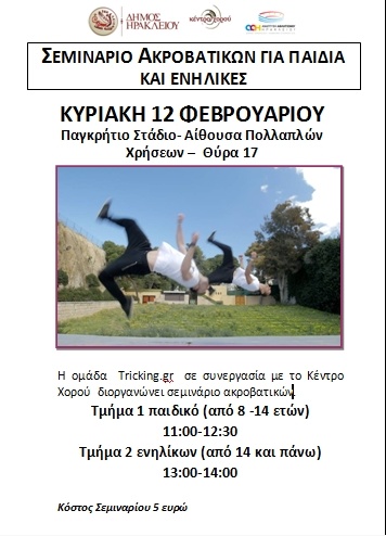 Σεμινάριο Ακροβατικών για Παιδιά κια Ενήλικες στο Παγκρήτιο Στάδιο τη Κυριακή 12 Φεβρουαρίου 2017