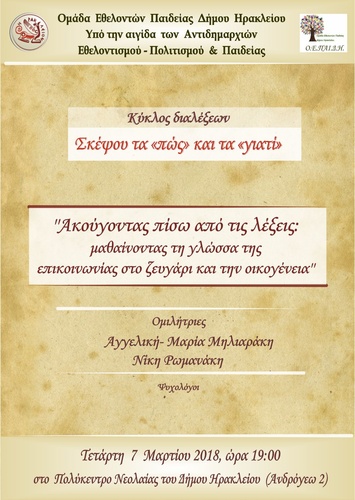 «Ακούγοντας πίσω από τις λέξεις : μαθαίνοντας τη γλώσσα της επικοινωνίας στο ζευγάρι και την οικογένεια».