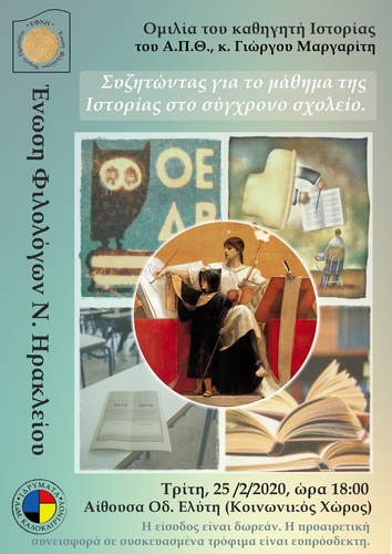 Η Ένωση Φιλολόγων Νομού Ηρακλείου (Ε.Φ.Ν.Η.) διοργανώνει ομιλία του καθηγητή Σύγχρονης Ιστορίας του Α.Π.Θ., κ. Γιώργου