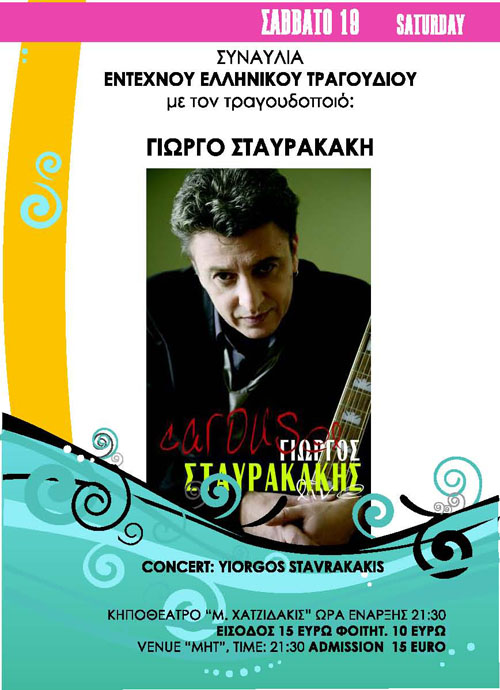 ΣΥΝΑΥΛΙΑ ΕΝΤΕΧΝΟΥ ΕΛΛΗΝΙΚΟY ΤΡΑΓΟΥΔΙΟΥ με τον τραγουδοποιό ΓΙΩΡΓΟ ΣΤΑΥΡΑΚΑΚΗ.