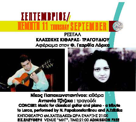 ΡΕΣΙΤΑΛ ΚΛΑΣΣΙΚΗΣ ΚΙΘΑΡΑΣ ΚΑΙ ΤΡΑΓΟΥΔ0Y με τους Νίκο Παπακωνσταντίνου (κιθάρα)και την Τζίτζικα Αντωνία (τραγούδι).