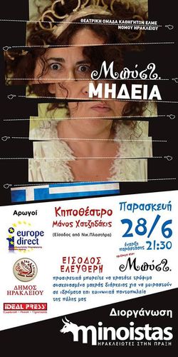 Οι Minoistas σας προσκαλούν στην θεατρική σάτιρα “Μήδεια” του Μποστ, την Παρασκευή 28 Ιουνίου στις 21:30 το βράδυ στο Κηποθέατρο Μάνος Χατζηδάκις. Η παράσταση θα δοθεί από τη θεατρική ομάδα καθηγητών ΕΛΜΕ του Νομού Ηρακλείου.