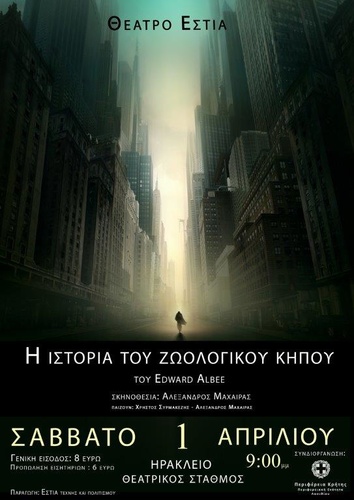 Με την παράσταση του έργου του Edward Albee, «ΙΣΤΟΡΙΑ ΖΩΟΛΟΓΙΚΟΥ ΚΗΠΟΥ»,  από το «Θέατρο Εστία»,  σε σκηνοθεσία Αλέξανδρου Μαχαιρά, συνεχίζεται σήμερα ΣΑΒΒΑΤΟ 1 ΑΠΡΙΛΙΟΥ 2017, και ώρα 21:00 το  ΦΕΣΤΙΒΑΛ ΘΕΑΤΡΟΥ, στο πλαίσιο των «ΠΟΛΙΤΙΣΤΙΚΩΝ ΑΓΩΝΩΝ 2017», που οργανώνει ο Δήμος Ηρακλείου και η ΔΗΚΕΗ, στο ΘΕΑΤΡΙΚΟ ΣΤΑΘΜΟ ΗΡΑΚΛΕΙΟΥ.