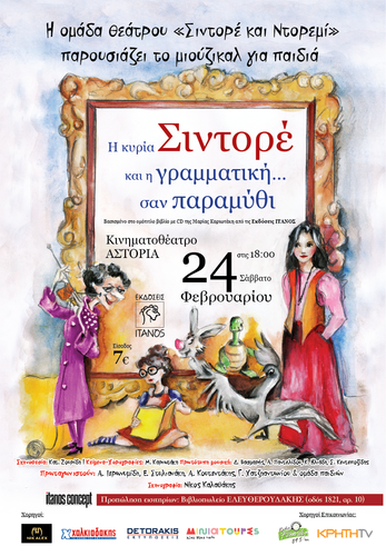 Η μουσικοθεατρική παράσταση "Η κυρία Σιντορέ και η γραμματική... σαν παραμύθι" θα φιλοξενηθεί αυτό το Σάββατο 24 Φεβρουαρίου στις 18:00 στο Κινηματοθέατρο Αστόρια!