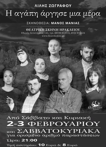 Έχουμε μπει πλέον στην τελική ευθεία για το μεγάλο στοίχημα μας. Μετά από πολυετή προσπάθεια καταφέραμε να εξασφαλίσουμε τα δικαιώματα του έργου ¨ Η αγάπη άργησε μια μέρα¨ της Λιλής Ζωγράφου.