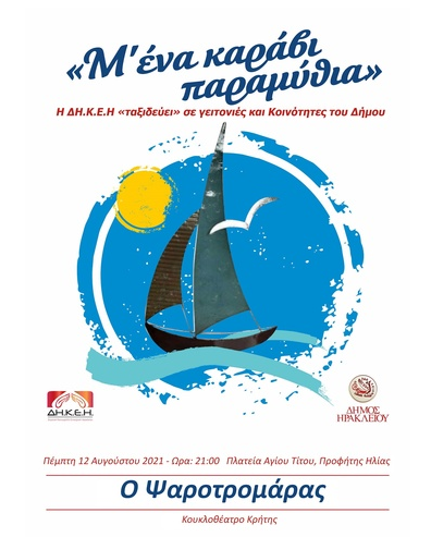 Συνεχίζονται την Τετάρτη 18 Αυγούστου οι παιδικές παραστάσεις με τίτλο «Μ’ ένα καράβι παραμύθια» από τον Δήμο Ηρακλείου και τη Δημοτική Κοινωφελή  Επιχείρηση Πολιτισμού, Περιβάλλοντος & Κοινωνικής Πρόνοιας Ηρακλείου (ΔΗ.Κ.Ε.Η).