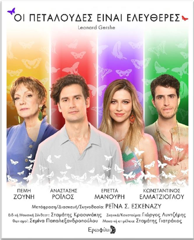 “Το μόνο που γυρεύω είναι η ελευθερία μου. Οι πεταλούδες είναι ελεύθερες. Η ανθρωπότητα δε θα αρνηθεί σε μένα …αυτό που έχει και η τελευταία πεταλούδα]”. Κάρολος Ντίκενς Ελευθερία, έρωτας, αυτοπροσδιορισμός, θάρρος, αφοσίωση, αγάπη. Έννοιες αναλλοίωτες μέσα στον χρόνο και πάντοτε επίκαιρες, τις οποίες πραγματεύεται με μοναδική μαεστρία ο Αμερικανός θεατρικός συγγραφέας Leonard Gershe στο πολυβραβευμένο έργο του ΟΙ ΠΕΤΑΛΟΥΔΕΣ ΕΙΝΑΙ ΕΛΕΥΘΕΡΕΣ , που ετοιμάζεται για καλοκαιρινή περιοδεία σε ολόκληρη την Ελλάδα. Η σκηνοθεσία είναι της Ρέινας Εσκενάζυ η παραγωγή της Erofili Productions, ενώ στους πρωταγωνιστικούς ρόλους θα συναντήσουμε την Πέμυ Ζούνη και τον Αναστάση Ροϊλό, την Εριέττα Μανούρη και τον Κωνσταντίνο Ελματζίογλου. Το τραγούδι της παράστασης γράφει ο Σταμάτης Κραουνάκης.