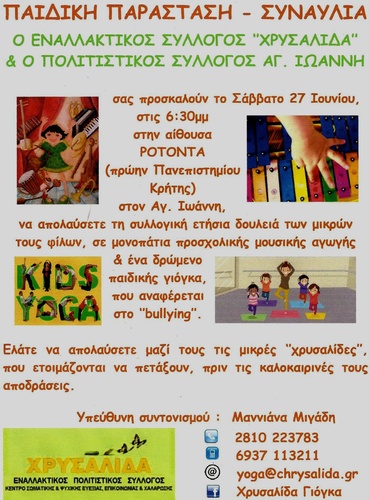 Παιδική παράσταση - συναυλία το Σάββατο 27 Ιουνίου στις 18:30 στην αίθουσα ΡΟΤΟΝΤΑ: