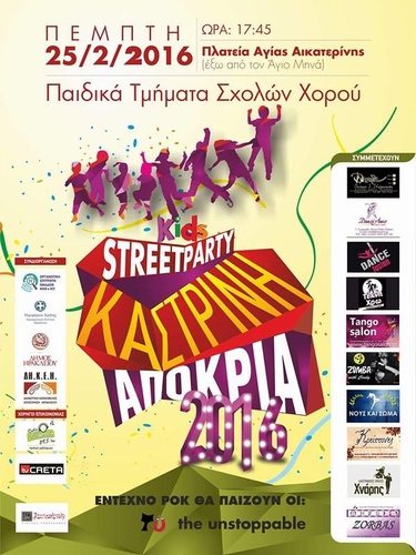 Από φέτος τα παιδιά αποκτούν την δική τους εκδήλωση στην πλατεία της Αγίας Αικατερίνης δίπλα στον Άγιο Μηνά. Το πρόγραμμα ξεκινά με το παιδικό συγκρότημα έντεχνου rock "the unstoppable" και συνεχίζεται με χορογραφίες από τις σχολές σύγχρονου και παραδοσιακού χορού της πόλης. Στην εκδήλωση συμμετέχουν οι σχολές σύγχρονου χορού Duende Dance Academy, DanziAmo ,Tέχνη Χρώ, Dance Fusion , Tango Salon, Νούς και Σώμα, Zumba with Cindy ενώ στους παραδοσιακούς χορούς συμμετέχουν ο Λαογραφικός όμιλος Χνάρη , η σχολή χορού και μουσικής "Οι Κρείττονες" το παραδοσιακό εργαστήρι χορού "Ζορμπάς" και το παραδοσιακό τμήμα της σχολής Τέχνη Χρώ.