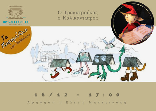 Σε κλίμα γιορτινό, υποδεχόμαστε αυτό το Σάββατο 16 Δεκεμβρίου , στις 17:00, την Ελένη Μπετεινάκη, μαζί με τον Τρακατρούκα τον καλικάντζαρο, τον Πι, τον Φι και την νεράιδα Άχνη.
