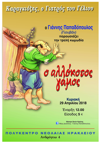 «ΚΑΡΑΓΚΙΟΖΗΣ- Ο ΑΛΛΟΚΟΤΟΣ ΓΑΜΟΣ», στις 12:00 το μεσημέρι με είσοδο 5€.