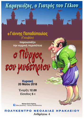 Θέατρο σκιών «Ο πύργος του μυστηρίου» την Κυριακή 20 Μαϊου 2018 στις 12:00 στο Πολύκεντρο Νεολαίας του Δήμου Ηρακλείου