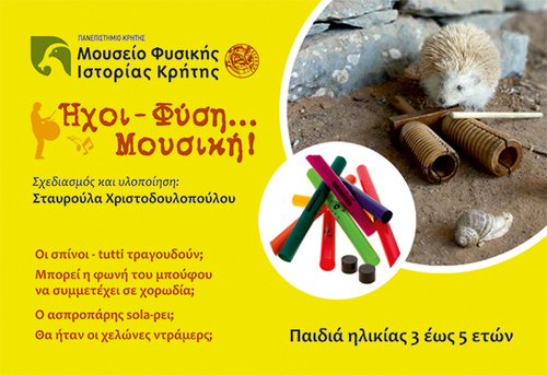 Το εκπαιδευτικό πρόγραμμα «Ηχοι-Φύση..Μουσική!» απευθύνεται σε παιδιά ηλικίας 3 έως 5 ετών τα οποία, μέσα από το παιχνίδι, συναντούν τον ρυθμό μέσα στον λόγο, το τραγούδι και τον χορό και κινούνται στον χώρο του μουσείου με μέσο τη μουσική. Χρησιμοποιώντας μουσικά όργανα, όπως ταμπουρίνα, μαράκες, καστανιέτες, εμπνέονται από προϊστορικά και σύγχρονα ζώα ανακαλύπτουν μέσα από τον αρμονικό κόσμο της φύσης τον κόσμο της μουσικής. Το πρόγραμμα βασίζεται στις θεωρίες των δασκάλων του μουσικού παιχνιδιού, τεχνικές των Orff, Kodaly και Dalcroze , σε συνδυασμό με τη διδασκαλία των αρχών της παραδοσιακής και της κλασικής μουσικής.