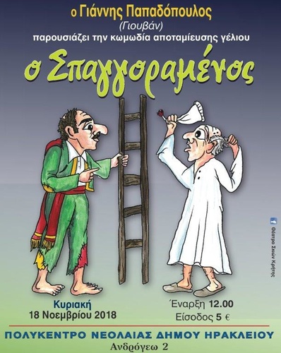 Το Θέατρο Σκιών Κρήτης των Άθω Δανέλλη και Γιάννη Παπαδόπουλου (Γιουβάν), σε συνεργασία με το Πολύκεντρο Νεολαίας Δ. Ηρακλείου, παρουσιάζει την πολυαγαπημένη και κλασική κωμωδία Ο Σπαγγοραμένος.