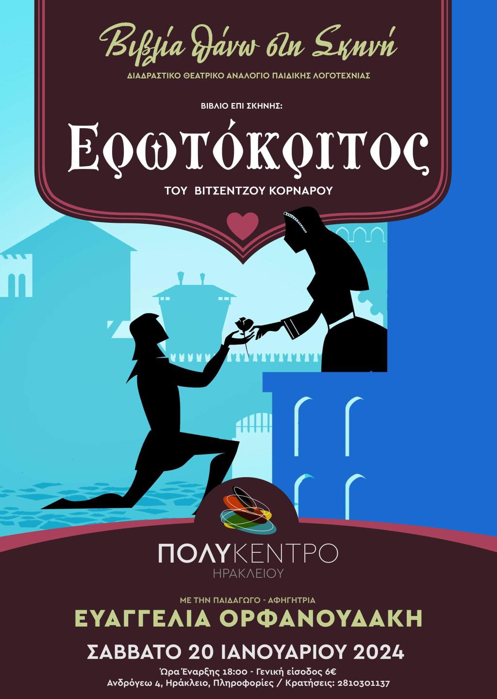 Αυτό το Σάββατο, 20 Ιανουαρίου 2024, βιβλία επί σκηνής, ένα από τα κορυφαία έργα της Νεοελληνικής Λογοτεχνίας, ο «Ερωτόκριτος» του Βιτσέντζου Κορνάρου!